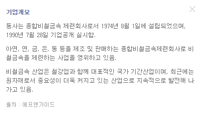 아연괴 및 기타 유가금속등을 제조, 판매하는 종합비철금속제련회사