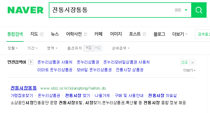 1.네이버에서 '전통시장 통통'을 검색합니다