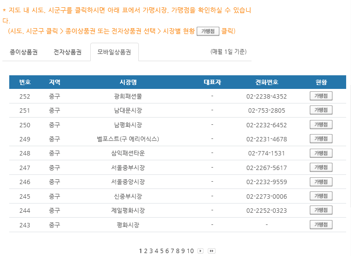 다. 종이상품권,전자상품권,모바일상품권 별로 가맹점포를 찾을 수 있어서 검색하시기에 용이합니다.