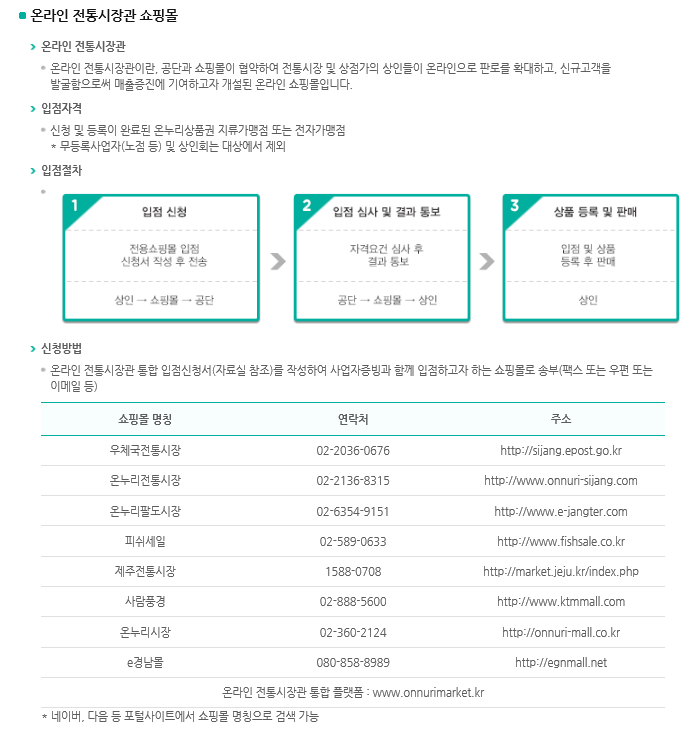 온누리마켓 홈페이지에서는 온누리전자상품권의 사용이 가능합니다. 또한 지역상인들의 물건 판매가 이루어지고 있습니다. 현재 농수산물 등 지역에서 판매중인 물품이 있으시다면 위와 같은 절차를 통해 입점이 가능하니 참고하시기 바랍니다
